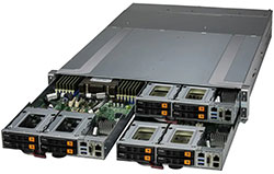 Four Nodes in 2U - 2x PCI-E 3.0 x16 (LP) slot; 1x SIOM card support, IPMI 2.0 + KVM with dedicated LAN. Redundant Power Option.