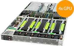 Up to 4x GPUs in 1U, Supports Active/Passive GPUs, 2x 10GBase-T LAN ports via Intel X540, 4 PCI-E 3.0 x16 (FHFL), 1 PCI-E 3.0 x16 (LP) and 1 PCI-E 3.0 x8 (LP)