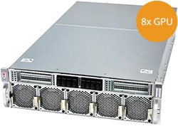 Ideal for HPC, AI, Deep Learning, cloud gaming, VDI, rendering and animation. 13x PCI-E 5.0 x16 slots. Redundant 2700W Titanium Power Supply, 8x 3.5"/2.5" hot-swap NVMe/SATA drive bays
