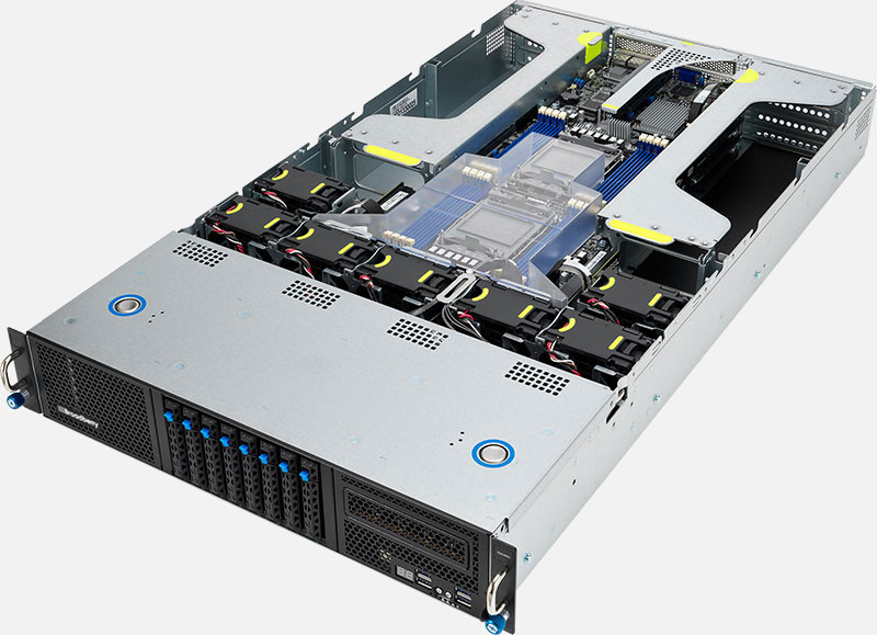 2U GPU server powered by dual-socket 3rd Gen Intel Xeon Scalable processors that supports up to 16 DIMM, four dual-slot GPU, 2 M.2, four NVMe (by SKU), total eleven PCIe 4.0 slots