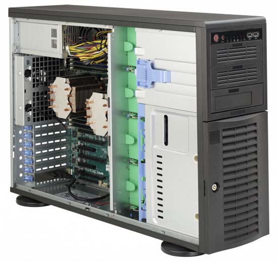 The Supermicro SuperWorkstation 7047A-T features hot-swap hard drives, giving you more flexibility and allowing you to remove drives without having to shut down the system.