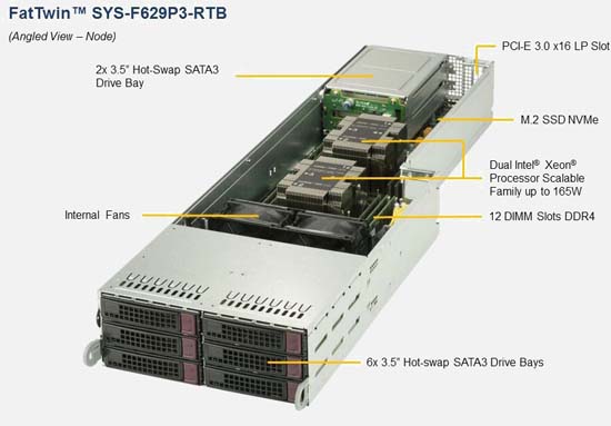 The Supermicro SuperServer F629P3-RTB | SYS-F629P3-RTB supports the Intel Intel Xeon Scalable Processors 2nd Generation family in a high-density 4U form-factor. These SuperServers are ideal for network infrastructure, front-end enterprise, and minimal-downtime cluster server systems.