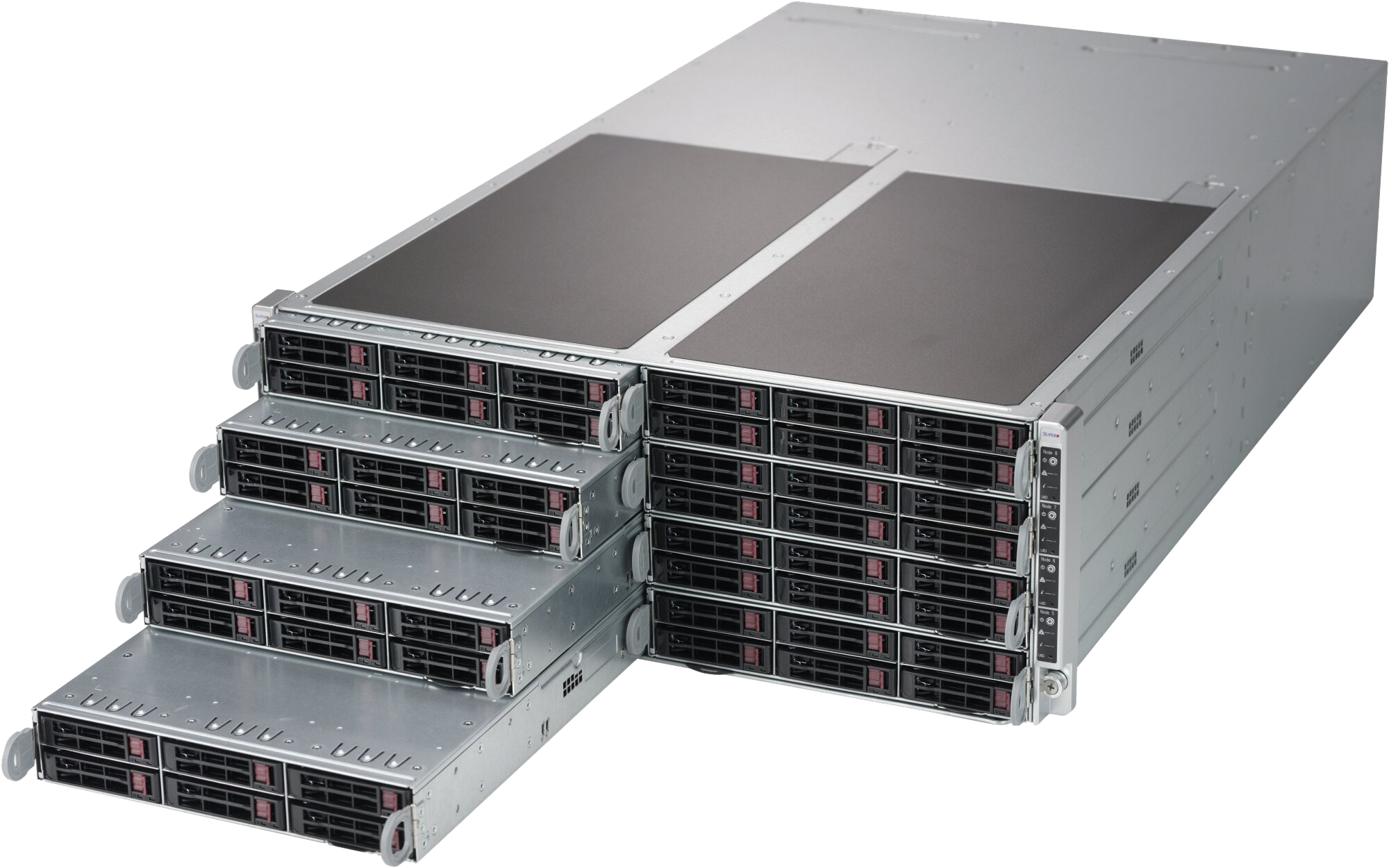The Supermicro FatTwin is the latest addition to Supermicro's evolving line of Twin Architecture SuperServer solutions. The 4U FatTwin greatly expands compute and storage capacities beyond Supermicro's existing 2U Twin2 and 1U Twin SuperServer systems to achieve increased performance with lower power consumption. By virtue of its shared components the FatTwin improves cost-effectiveness and reliability, while its modular architecture makes it flexible to configure and easy to maintain.