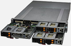 The Supermicro GrandTwin SuperServer 210GT-HNTF | SYS-210GT-HNTF can be configured with 2.5" drives, a more space efficient and low noise option. These drives also offer energy savings and increased flexibility.
