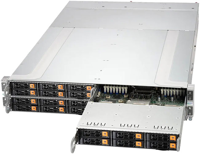 Ideal for HPC, MEC, Cloud Gaming, Multi-purpose CDN, High-availability Cache Cluster and EDA. Quad Node 2U Form Factor. Redundant 2200W Power Supply, 6x 2.5" hot-swap NVMe/SATA/SAS drive bays (Per Node)
