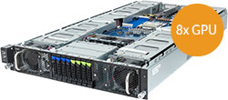 Supports up to 8x double slot GPU cards, 2x 10Gb/s BASE-T LAN ports, 8x 2.5" hot-swappable HDD/SSD bays, redundant power option