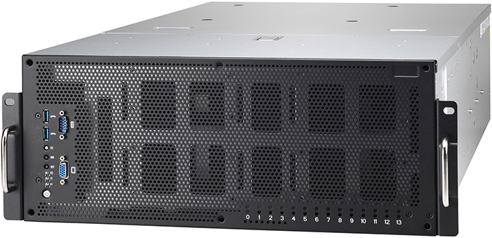 Dual Root Complex 4U 8GPU Server. (8) Double-wide PCIe x16 slots for GPU card deployment. (1) PCIe x16 slot for high speed networking. AST2500 BMC with Redfish support.