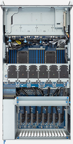 Dual Intel Xeon 6 Series Processor, Supports 8 x Dual Slot Gen5 GPUs, Dual 10Gb/s LAN ports. 3000W Redundant power supplies, 8x 3.5"/2.5" NVMe/SATA/SAS & 4x 3.5" SATA/SAS hot swap drive bays.