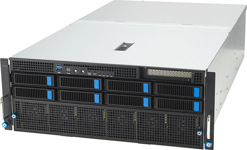 Dual 4th Gen Intel Xeon Scalable Processors, Supports up to 8x double slot GPU cards, Quad 3000W redundant power supply, 8x 3.5"/2.5" NVMe/SATA/SAS hot-swappable drive bays.