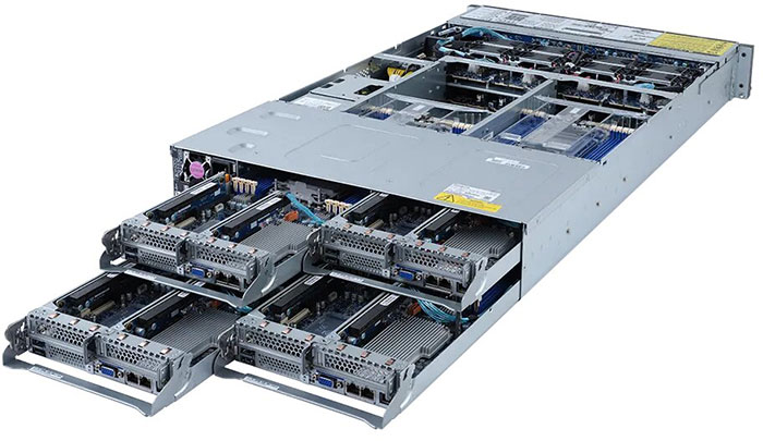 2U 4 Node System, 8x 10Gb/s LAN ports, 8x PCIe Gen4 expansion slots, redundant power options.