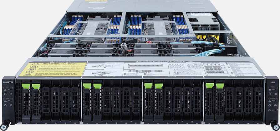 The Gigabyte H262-PC2 (6NH262PC2MR-00) can be configured with hot-swap drives, allowing you to remove and replace the drives whilst the system is running with no interruption.