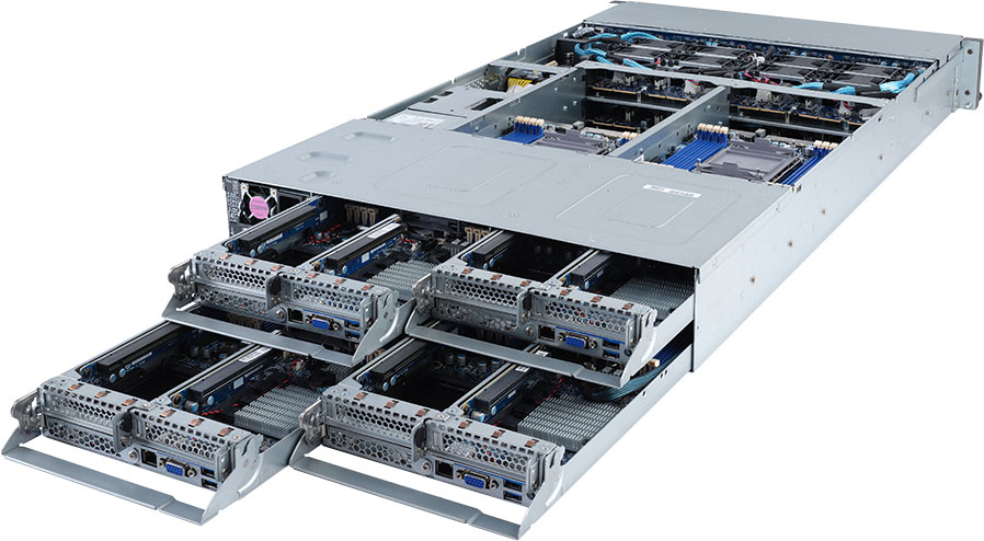 Quad Node, Dual 3rd Gen Intel® Xeon® Scalable Processors, 2U 4 Node System, 8x PCIe Gen4 expansion slots, 2200W redundant power supply, 8x 2.5" NVMe/SATA Hot swap drive bays (2x Per Node).