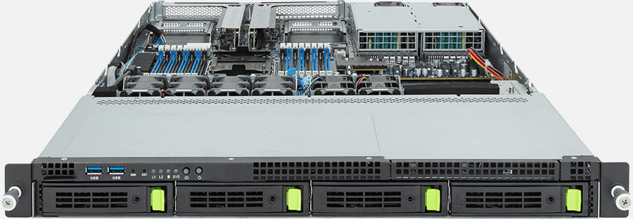 Single 4th Gen Intel Xeon Scalable Processors, 2x FHHL PCIe Gen5 x16 slot, 1x 1Gb/s LAN ports (Intel® I210-AT), Rundundant 800W power supply, 4x 3.5"/2.5" NVMe/SATA/SAS hot-swappable drive bays.