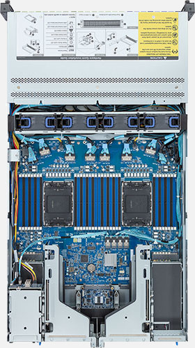 Dual 4th Gen Intel Xeon Scalable Processors, 2x FHHL PCIe Gen5 x16 Slots, 2x 1Gb/s LAN ports (Intel® I350-AM2), 12x 2.5" NVMe/SATA/SAS, 12x 2.5" NVMe hot-swappable drive bays.