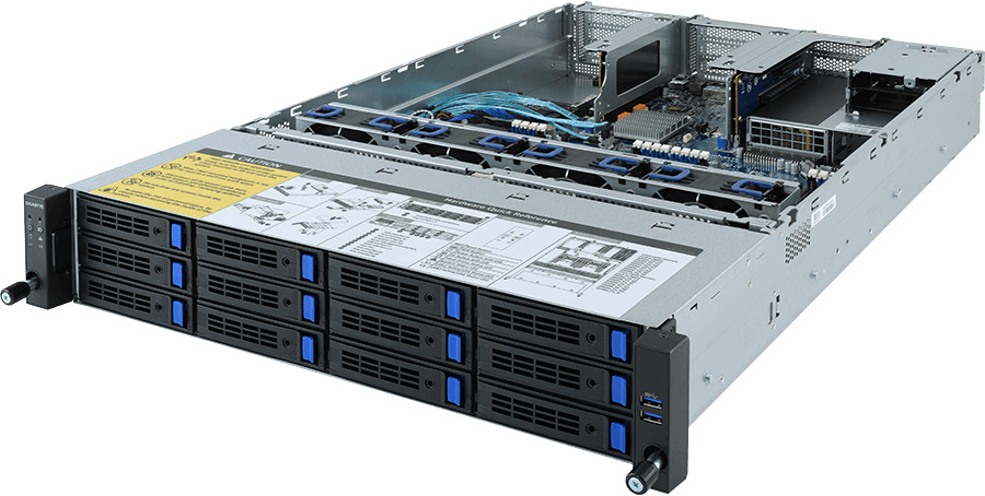 The Gigabyte R261-3C0 (6NR2613C0MR-00-200) can be configured with hot-swap drives, allowing you to remove and replace the drives whilst the system is running with no interruption.