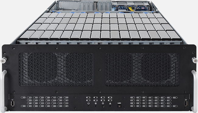 60x 3.5" SATA hot-swappable HDD bays, 6x 2.5" U.2, 2x SATA/SAS SSD hot-swappable SSD bays in rear side Dual 10Gb/s SFP+ and Dual 1Gb/s LAN ports.