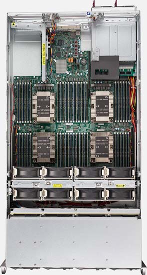 The Broadberry 8049U-E1CR4T is a 4-socket server solution powered by Intel Xeon Scalable processors. It has a 6TB RAM capacity and can be configured with up to 24 hot-swap 3.5" SAS/SATA drives.