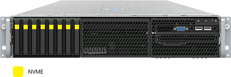 This system can be configured with NVMe drives, which are capable of significantly better performance than SATA and SAS.