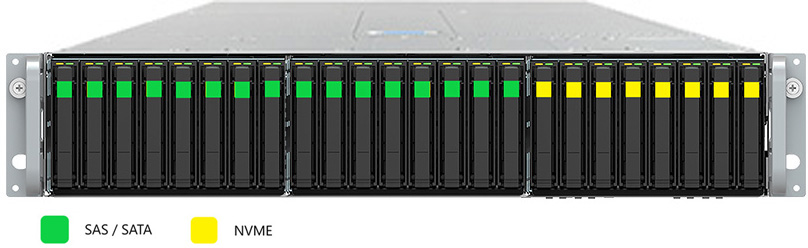This system can be configured with SATA drives for cost-effective 12gb/s storage.