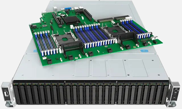 | Included Items | (1) 2U Chassis with Quick Reference Label affixed to top cover (1) Intel Server Board S2600WFT (dual 10 GbE LAN) (2) PCIe* riser card brackets. (2) 3-slot PCIe* riser cards (1) 2-slot low profile PCIe* riser card (24) 2.5" hot-swap drive bays with drive carriers and blanks. (3) SAS/NVMe combo backplane (24) 2.5" hot-swap drive tool less carriers (1) Storage rack handle assembly A2UHANDLKIT o 1 set storage rack handles o 410 mm front panel cable H26893-xx o 640 mm front panel USB 2.0 cable H20005-xxx (1) 250 mm backplane I2C cable H91166-xxx (2) 75 mm backplane to backplane I2C jumper cable H91163-xxx (2) 730 mm mini SAS HD VT-VT cable AXXCBL730HDHD (4) 875 mm mini SAS HD VT-VT cable AXXCBL875HDHD (1) 400/525/675 mm backplane power cable H82108-xxx (1) Standard 2U air duct (6) Hot-swap system fans FR2UFAN60HSW See Configuration Guide for complete list |