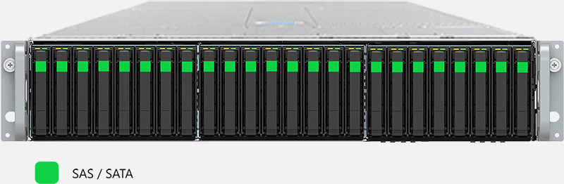 This system can be configured with SATA drives for cost-effective 12gb/s storage.