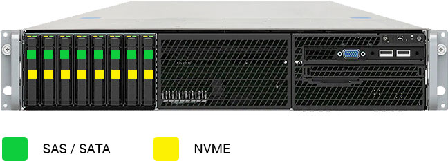 This system can be configured with SATA drives for cost-effective 12gb/s storage.