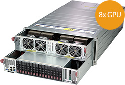 Supports 8x Tesla V100 with 300GB/s NVLINK, Dual 10GBase-T LAN with Intel X540, 16x Hot-swap 2.5" SAS/SATA drives and 8x NVMe drives