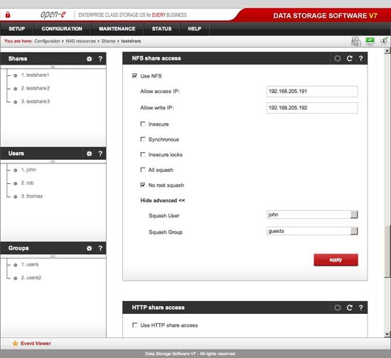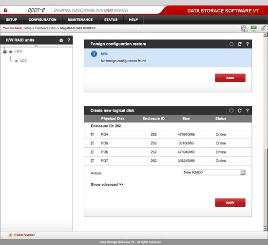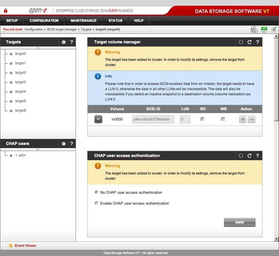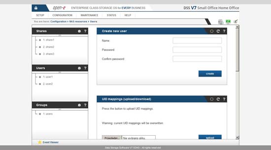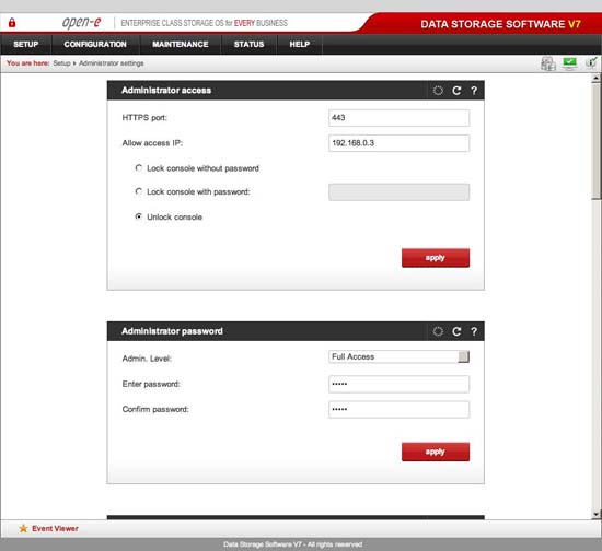 This software solution has been specifically designed to be very user friendly. The webGUI features intuitive navigation, with users being able to directly access all the features the Open-E DSS V7 has to offer.