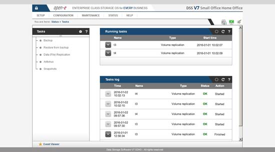 There is a Task and Schedule Manager, that allows you to create automatic schedules for tasks such as taking snapshots or volume replication. Setup is very easy, and once done it works automatically so you won’t have to worry about it and can instead focus on other tasks.