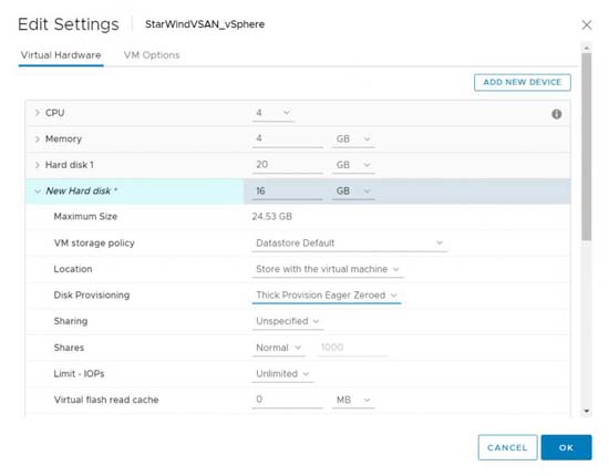 Virtual SAN just “mirrors” the storage and caches between the given numbers of hosts creating a fault-tolerant storage pool. The system administrator has full reign as to how many replicas of a particular VM are kept alive, and how many active storage controllers a cluster should use.