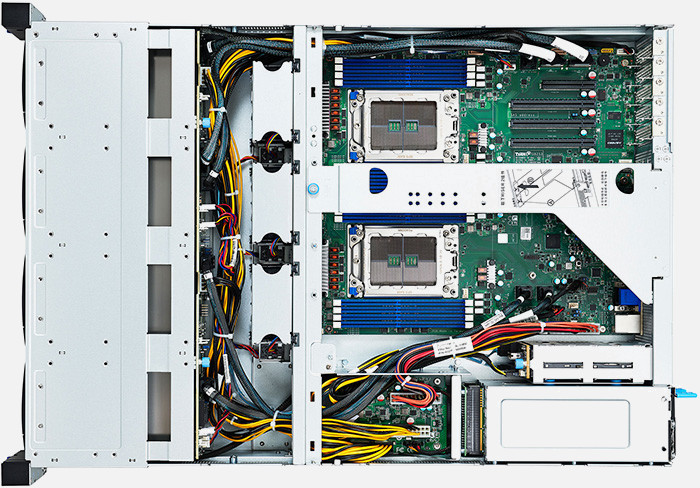 This server solution can be configured with 2.5" drives, which usually provide more energy efficiency, cost efficiency and boosted flexibility.
