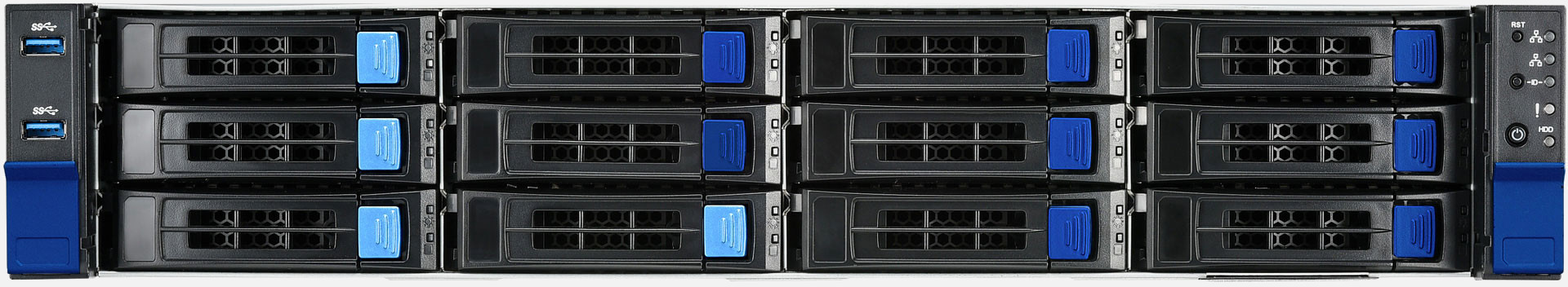 2U1S Storage Server, hybrid NVMe/SAS/SATA BP, 12 SFF. 2x FH/HL PCIe Gen 5.0 x16 slots. 12x NVMe hot swap drive bays, 1200W Redundant power supply. Dual 10GbE Base-T LAN.