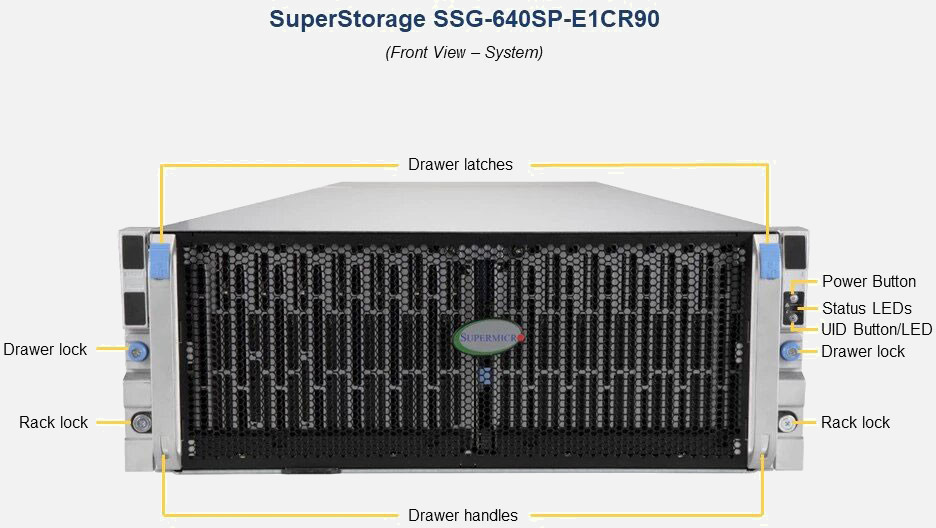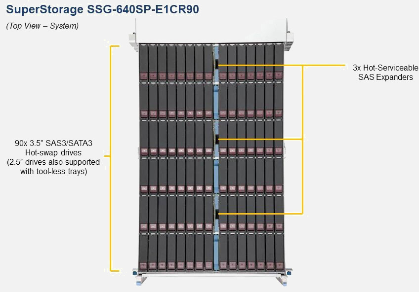 Ideal for HPC, Big Data & Analytics. 3x PCI-E 4.0 x16 expansion slots. Redundant power supply. 90 3.5"/2.5" Hot-swap SAS3/SATA3 drives, 2x Fixed slim SATA SSD, 2x NVMe M.2.