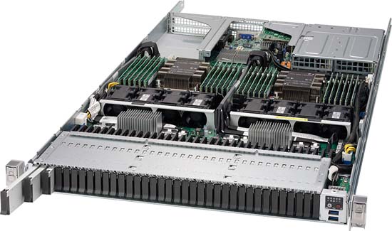 32x Hot-swap PCI-E NF1 Drive Bays, 4x SATA3 M.2 Drive Bays, 2x PCI-E 3.0 x16 slots, 1x PCI-E 3.0 x4 slot, 2x 10GBase-T LAN ports, Redundant Power Option.