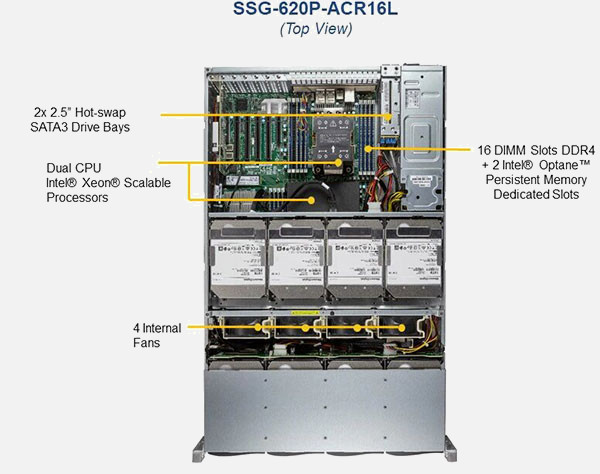The Supermicro Storage SuperServer SSG-620P-ACR16L | SSG-620P-ACR16L features hot-swap hard drives, giving you more flexibility and allowing you to remove drives without having to shut down the system.