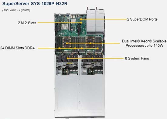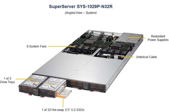 The Supermicro SuperServer 1029P-N32R | SYS-1029P-N32R can be configured with 2.5" drives, a more space efficient and low noise option. These drives also offer energy savings and increased flexibility.