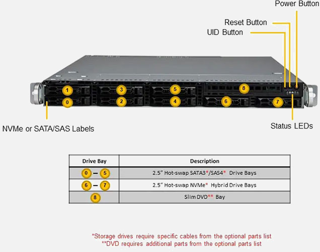 The Supermicro Cloud DC SuperServer 121C-TN2R | SYS-121C-TN2R can be configured with 2.5" drives, a more space efficient and low noise option. These drives also offer energy savings and increased flexibility.