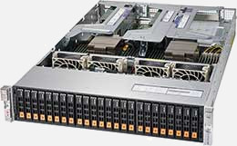 The Supermicro SuperServer 2123US-TN24R25M | AS-2123US-TN24R25M can be configured with 2.5" drives, a more space efficient and low noise option. These drives also offer energy savings and increased flexibility.