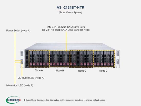 The Supermicro SuperServer 2124BT-HTR | AS-2124BT-HTR features hot-swap hard drives, giving you more flexibility and allowing you to remove drives without having to shut down the system.