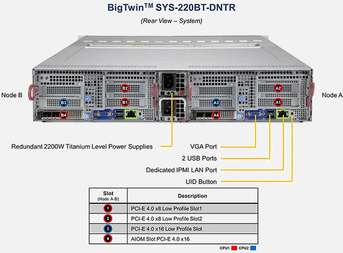 Two hot-pluggable systems (nodes) in a 2U form factor. 3rd Gen Intel Xeon Scalable processors. Redundant power supply.