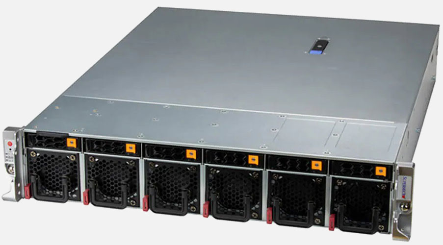 Dual 3rd Gen Intel Xeon Scalable Processors, Supports Up to 3 dual-width GPU cards, Redundant 1300W DC Power Supply. 6x 2.5" NVMe/SATA hot swappable drive bays.