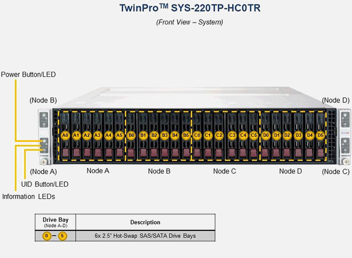 The Supermicro Twin SuperServer SYS-220TP-HC0TR | SYS-220TP-HC0TR features hot-swap hard drives, giving you more flexibility and allowing you to remove drives without having to shut down the system.