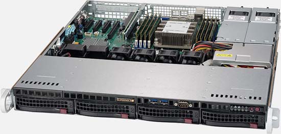 This system can be configured with up to a terabyte of RAM and 4x hot-swap 3.5 SATA drives. It also features 1x PCI-E x16 slot and 400W redundant platinum power supplies. For networking it has Dual 10GBase-T LAN with Intel X722 + X557. This server solution is ideal for web hosting, database applications, and application and data serving.