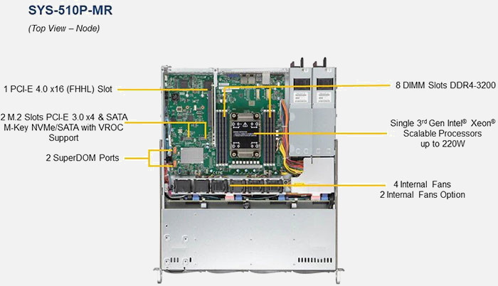 The Supermicro UP SuperServer SYS-510P-MR | SYS-510P-MR features hot-swap hard drives, giving you more flexibility and allowing you to remove drives without having to shut down the system.