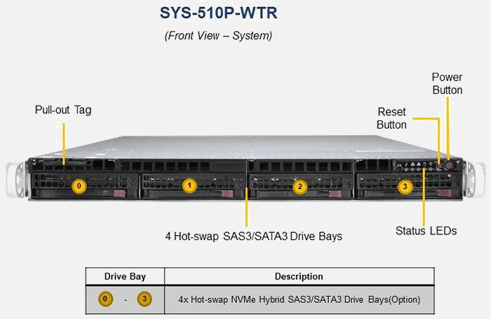 The Supermicro UP SuperServer SYS-510P-WTR | SYS-510P-WTR features hot-swap hard drives, giving you more flexibility and allowing you to remove drives without having to shut down the system.