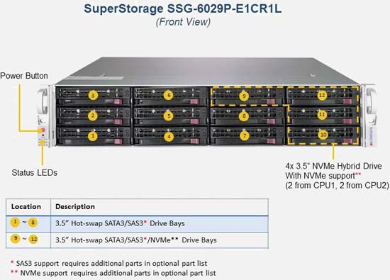 Configure the Supermicro SuperServer 6029U-E1CR4 | SYS-6029U-E1CR4 with 3.5" drives. These drives are more cost-effective, offer a larger storage capacity and offer more flexibility.