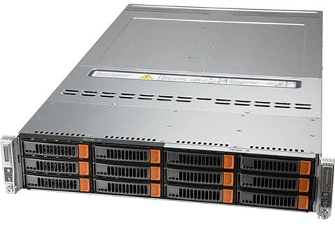 Two hot-pluggable systems (nodes) in a 2U form factor. 2 PCI-E 4.0 x16 (LP) slot. Redundant power supplies. 2 M.2 NVMe/SATA support onboard.