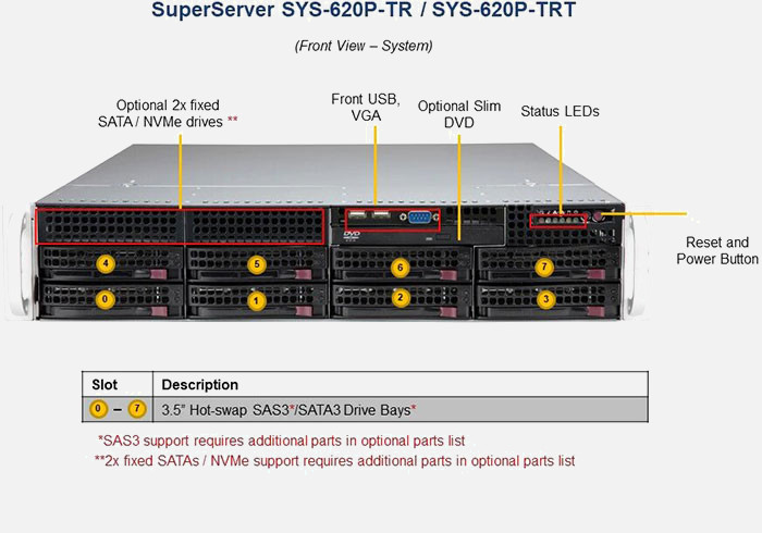 The Supermicro SuperServer SYS-620P-TRT | SYS-620P-TRT features hot-swap hard drives, giving you more flexibility and allowing you to remove drives without having to shut down the system.