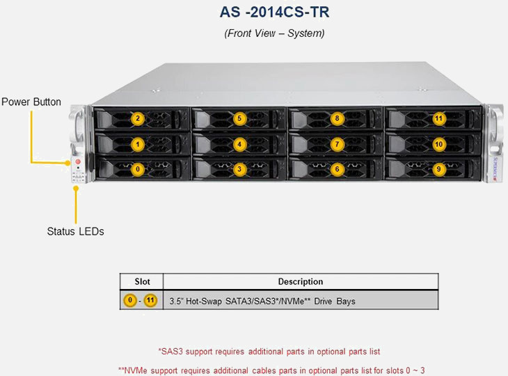 The Supermicro A+ Server 2014CS-TR | AS-2014CS-TR features hot-swap hard drives, giving you more flexibility and allowing you to remove drives without having to shut down the system.