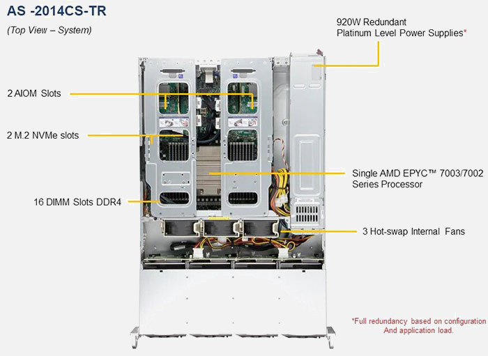 The Supermicro A+ Server 2014CS-TR | AS-2014CS-TR supports the AMD AMD EPYC "ROME" Gen 2 , AMD EPYC "Milan" Gen 3 family in a high-density 2U form-factor. These SuperServers are ideal for network infrastructure, front-end enterprise, and minimal-downtime cluster server systems.